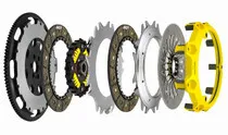 T1SS-N03 Mod-Twin 225 HD Sprung Street Kit is designed for high powered AWD street cars. It unites uncompromised pedal feel, durability, engagement quality with very high torque capacity by combining twice the organic friction surfaces with an ultra-durable spring center Mono-Drive hub in a completely modular design. Each diaphragm spring endures an exclusive four-stage heat treating process providing a consistent light pedal feel. Steel-backed Friction Plates with high quality organic friction materials deliver stable friction coefficient, good heat capacity and long clutch life. These Friction Plates uniformly transfer torque to the Mono-Drive sprung hub assembly which extends input shaft life and reduces driveline shock from torsional vibration. This kit includes a CNC-machined and dynamically balanced flywheel, pressure plate cover, diaphragm spring, face, puck-style ceramic friction plates, sprung Mono-Drive hub assembly, floater, patented Monoloc Collar, release bearing, alignment tool and pilot bearing (if needed). Mod-Twin clutches are fully rebuildable and most components can be ordered separately.