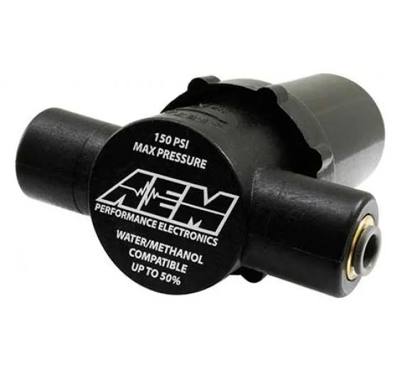 If you are using a Water/Methanol Injection System it may greatly increase pump life to use a water/methanol filter. The AEM Water/Methanol Injection Filter prevents foreign particles as small as 40 microns from clogging or damaging pumps, injection nozzles check valves or flow sensors. The AEM Water/Methanol Injection Filter uses fittings for use with 1/4" OD nylon tubing, so it fits most Water/Methanol injection kits on the market today!
