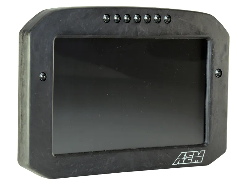 CD-7 Carbon Flat Panel Digital Dash Displays have a compact enclosure that makes them perfect for flush mount installation or in-dash installations with tight tolerances. They include all of the robust features found in the original CD-7 Carbon Dash, but do not have buttons or an LED shade hood built into the enclosure.