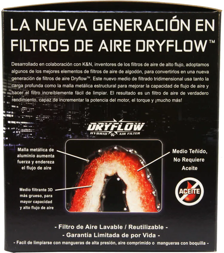 AEM Dryflow Air Filters were developed in collaboration with K&N, the inventor of High Flow Air Filters. We adopted some of the best elements of cotton air filters into a new generation synthetic Dryflow Air filter. The three-dimensional filtering medium uses both depth loading and structural screen wire to enhance airflow capabilities and make the filter incredibly easy to clean. The result is a true performance air filter that does not require oiling, carries a lifetime limited warranty and is capable of increasing horsepower and torque.