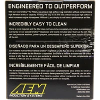 • AEM Air Filters are cleanable and reusable for the life of your vehicle