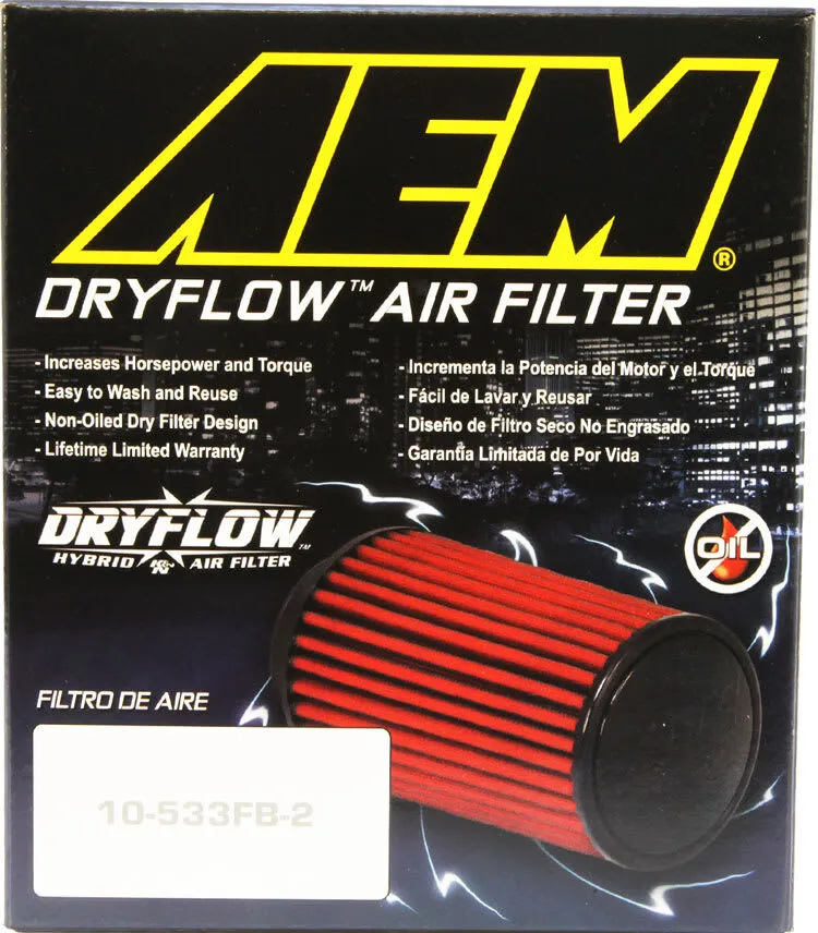 • Product Style: AEM Dryflow Round Tapered Air Filter