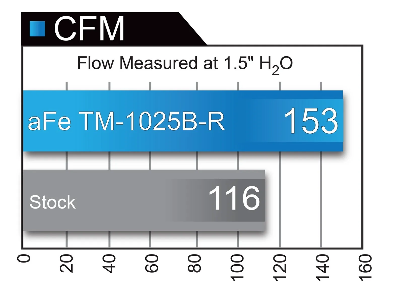 Dyno Tuned Intake Tube: This system uses a high quality plastic CAD designed, dyno-tuned, intake tube to achieve maximum power gains while maintaining a perfect fit. This intake outflows the factory intake by 35% and produced +14 HP and +16 lbs. x Ft. of Tq. on our in-house Dyno