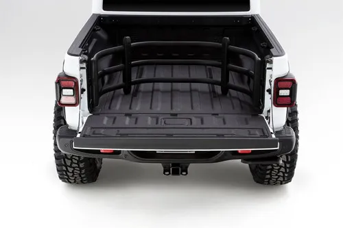 V-shape design is the perfect mix of form and function that keeps your gear secure. Provides the extra clearance needed when used with some tonneau cover rails. Flip it out with the tailgate open to gain up to 2-feet of enclosed cargo area. Flip it inside and close the tailgate to keep tools and smaller cargo contained in the truck bed.