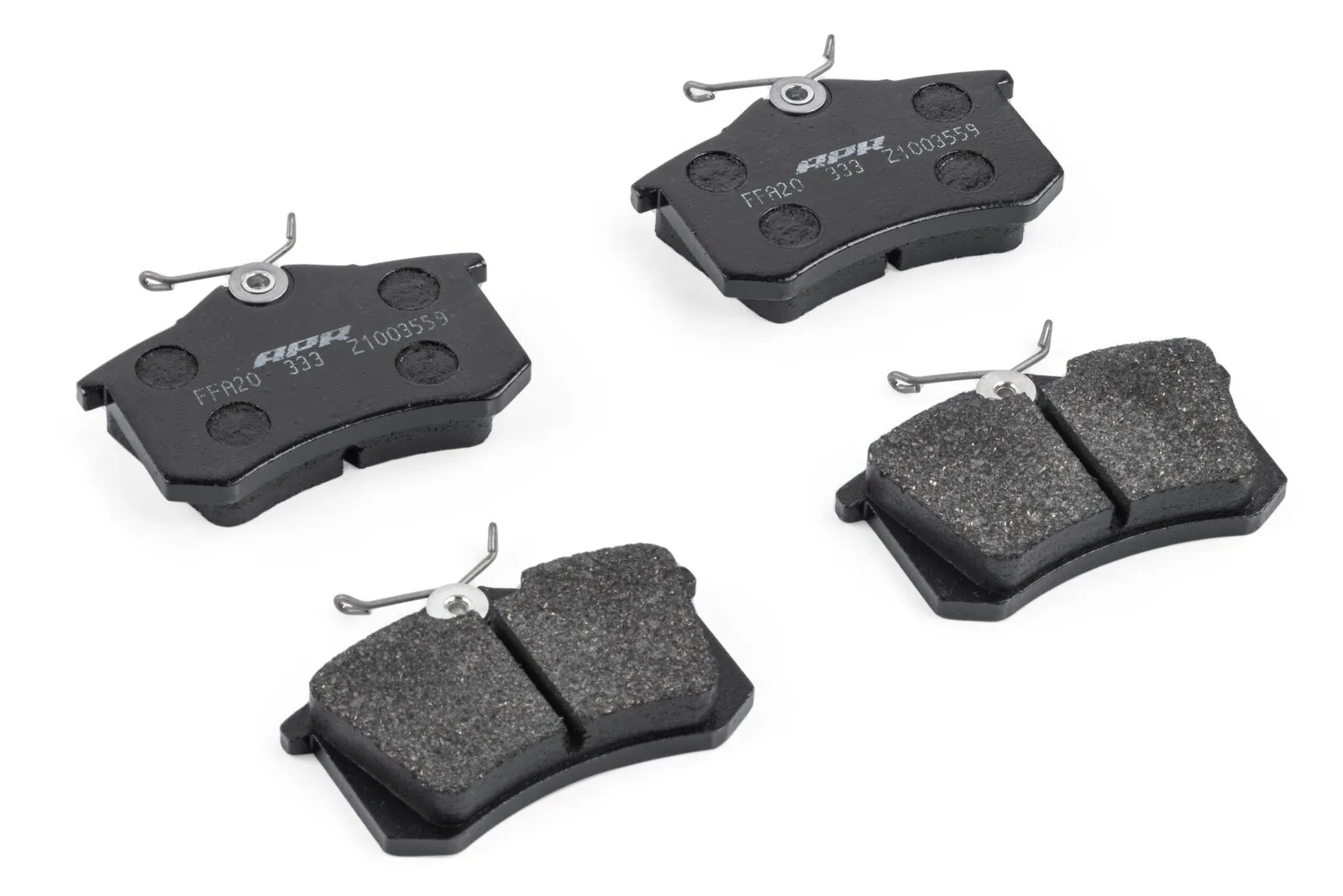 APR OE Replacement Advanced Street Pads are a direct upgrade for your factory brake. This pad material will remain fade free to operating temperatures that far exceed typical OE pads. The material has a high friction co-efficient but is engineered to deliver torque curves that will extract the most from street-legal tires without overwhelming them and causing premature wheel lockup. The fairly low thermal conductivity of this friction material slows the rate of heat transfer to the brake calipers, pressure seals and brake fluid. This pad compound delivers the type of pedal feel and fade resistance that are normally associated with entry-level race pads but it also delivers very good cold response and low disc wear, which a race pad would not when used on a street car. They pair perfectly with the APR Direct Replacement Brake Discs, and provide a no-compromise solution for spirited daily driving.