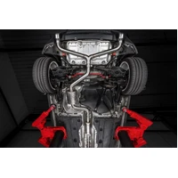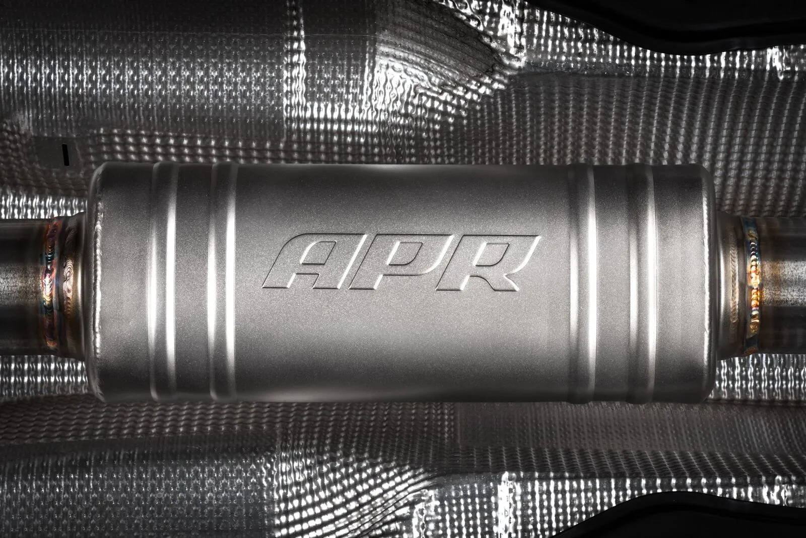 The APR Catback Exhaust System personalizes your vehicle's looks, sound and performance. Beautifully hand-crafted T304-stainless-steel components adorn the system with stunning TIG-welding throughout. Our straight-through brushed-finished mufflers are configurable to your desire, smoothing the exhaust note to a deep growl, without adding restrictions, rasp or drone. Strong high-quality bracketry and OEM-style clamps hold the system steadily in place, making the install or removal a snap, and fitment simple, yet precise. A cast 3" to dual 2.5" rear splitter creates an ultra-smooth transition, steadily feeding exhaust gasses out of the system, while looking tidy from under the rear bumper. Finally, removable 4" polished slash-cut exhaust tips finish the system, adding a classy motorsport-inspired touch to the rear of the vehicle.