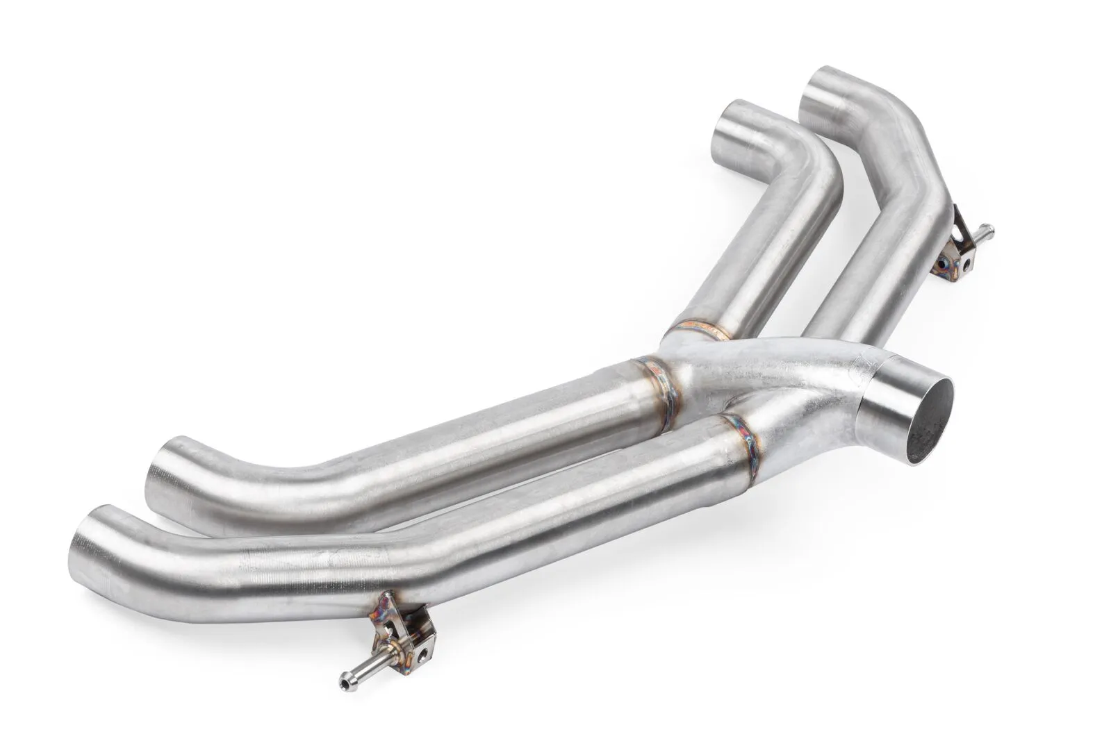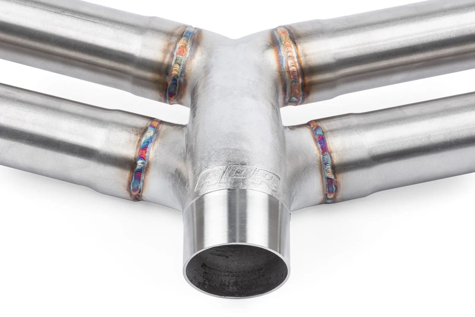 For the more track minded enthusiasts where weight, sound and price point all are highly desired metrics, the APR Valveless system is the desired configuration. In this configuration the axle back portion of the exhaust has the mufflers and valves removed. Weight drops considerably and the system becomes more aggressive. The system is louder and more aggressive, but thanks to the center Helmholtz chamber, drone is reduced, giving a more pleasant, yet aggressive driving experience. However, when upgrading other exhaust components, the system transforms and becomes unapologetically raw with maximum aggression - A true track enthusiast's dream.