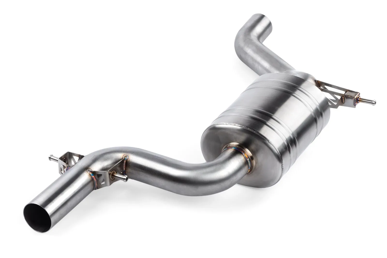 The APR Catback Exhaust System personalizes your vehicle's looks, sound and performance. Beautifully hand-crafted T304-stainless-steel components adorn the system with stunning TIG-welding throughout. Our straight-through brushed-finished mufflers are configurable to your desire, smoothing the exhaust note to a deep growl, without adding restrictions, rasp or drone. Strong high-quality bracketry and OEM-style clamps hold the system steadily in place, making the install or removal a snap, and fitment simple, yet precise. A cast 3" to dual 2.5" rear splitter creates an ultra-smooth transition, steadily feeding exhaust gasses out of the system, while looking tidy from under the rear bumper. Finally, removable 4" polished slash-cut exhaust tips finish the system, adding a classy motorsport-inspired touch to the rear of the vehicle.