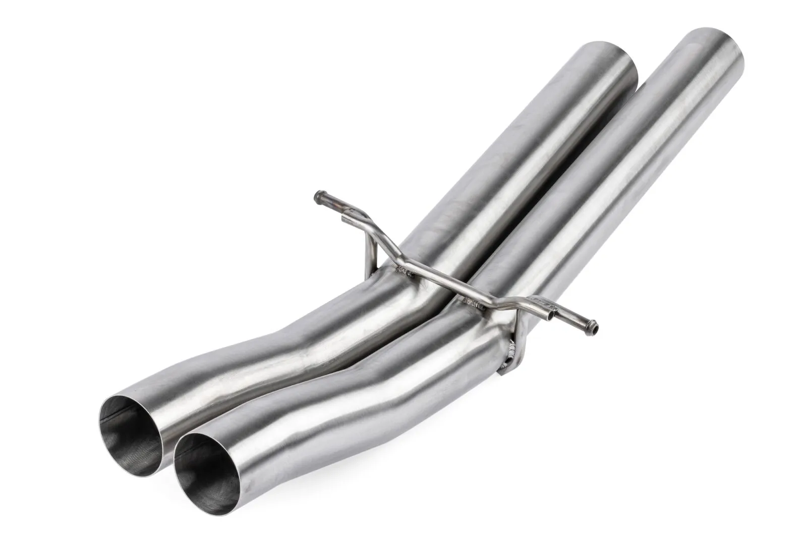 • Dual 3” mandrel-bent brushed tubing with dual 3” valved and dual 2.5” non-valved outlets