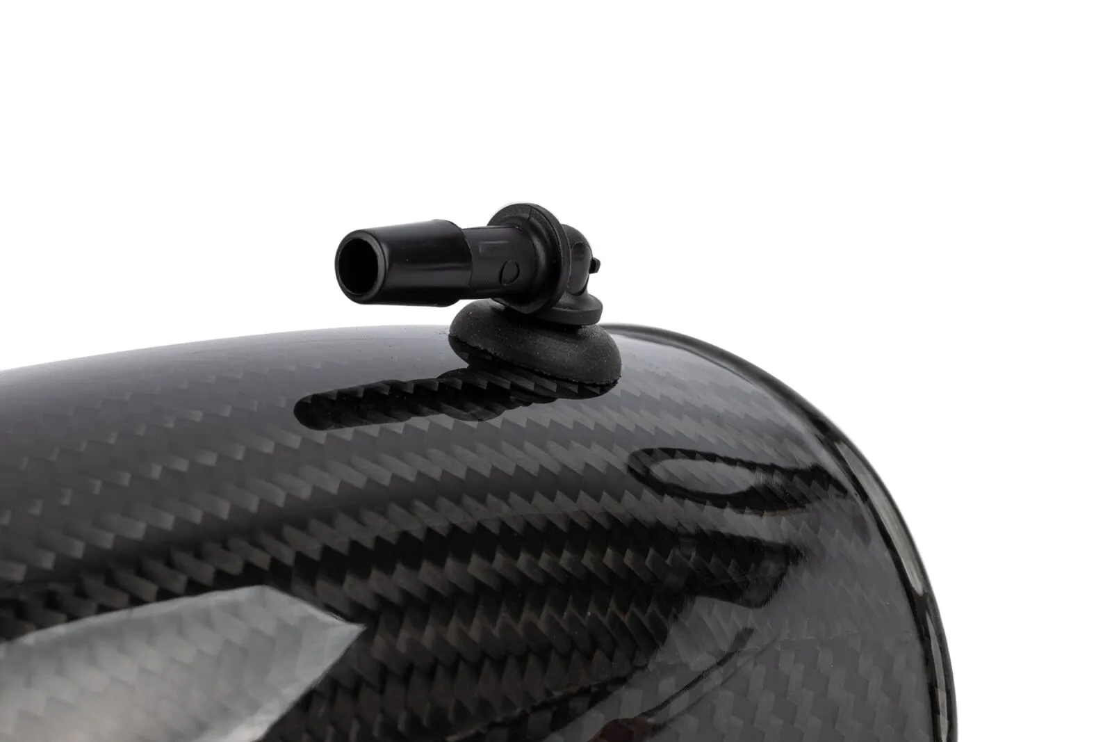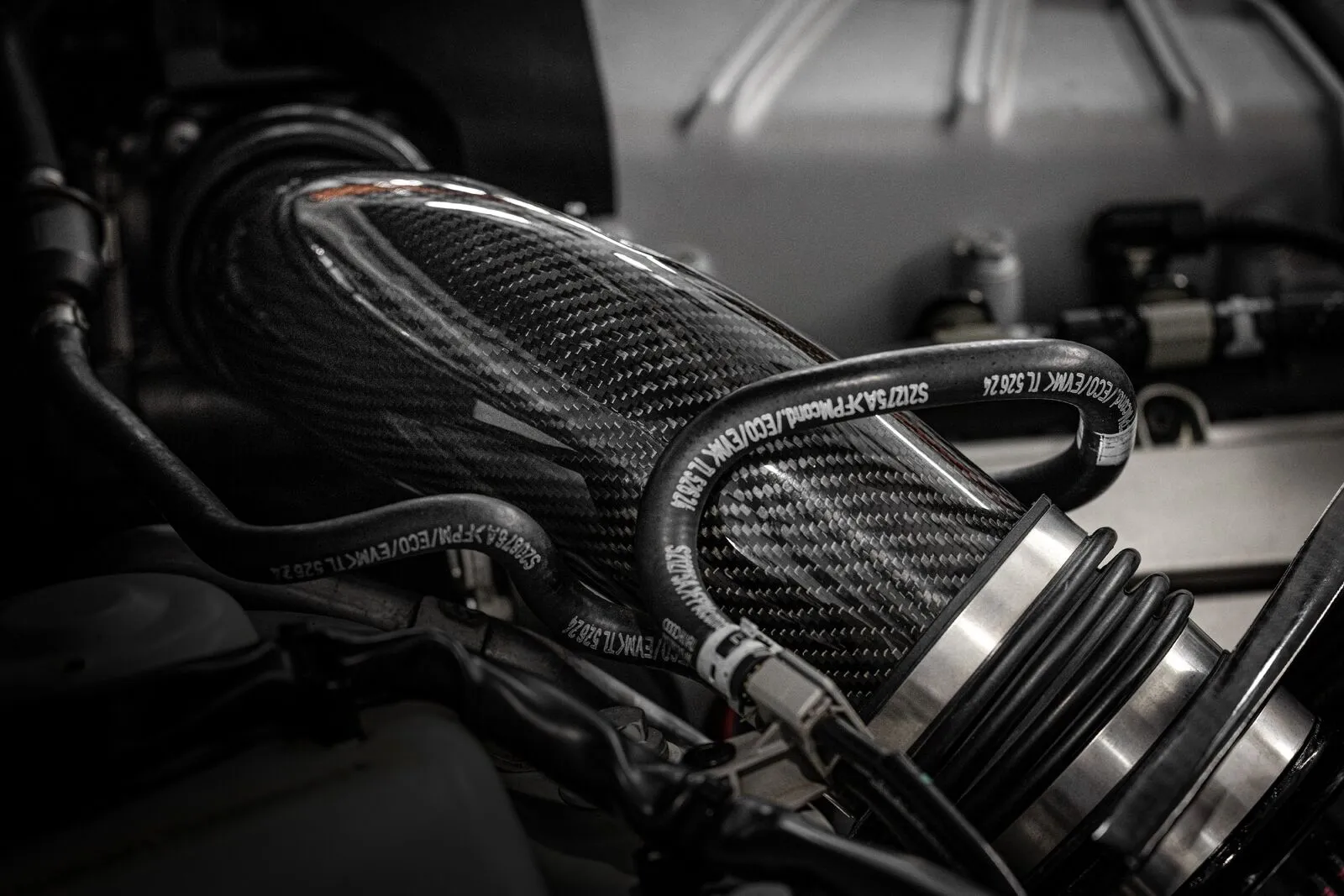 The APR Carbon Fiber Throttle Inlet Pipe is a massive upgrade over the complex factory inlet pipe. Reducing restrictions before the throttle body is necessary to maximize performance on this system. Our system is smooth and direct, and doesn't have extra resonators or restrictions like the factory system. The result is simple: it flows 20% better than stock, sounds better, looks better, and perfectly complements our open intake system!