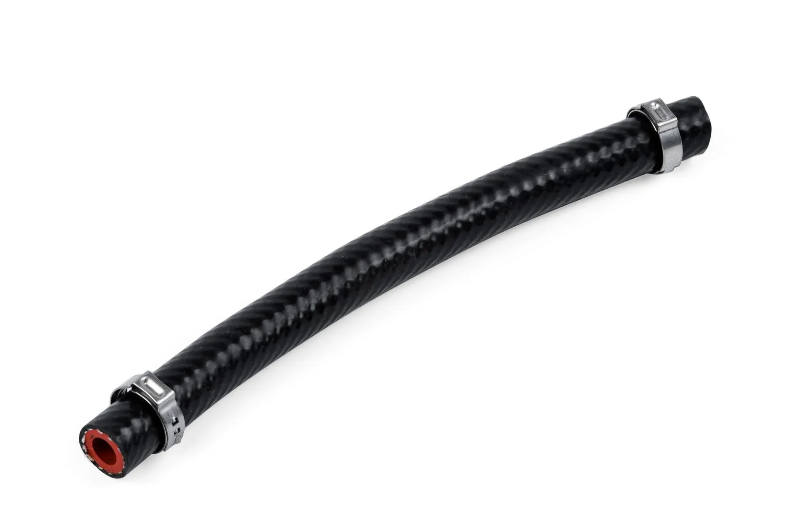 Interlocking adapter rings form a port-matched ideal entrance to the turbocharger, while larger rings (sold separately) provide port-matched support for even larger hybrid turbocharger upgrades. A thick stainless-steel heat shield protects the pipe from the hot turbocharger manifold, and an external stainless PCV pipe provides proper PCV placement without impacting the inlet's design.