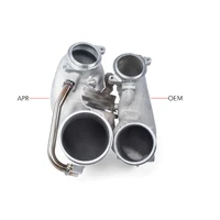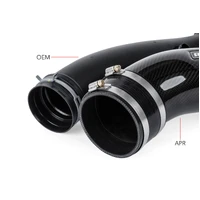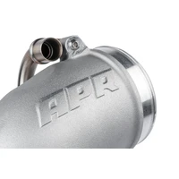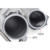 The APR Turbocharger Inlet System uses a massive 4" carbon fiber inlet tube that attaches to the factory airbox, or the APR Intake Filter System. Attached to the carbon fiber tube is a massive 4" cast aluminum inlet which is organically shaped to retain the largest possible cross-sectional area within the pipe all the way to the inlet of the turbocharger's compressor cover. Despite the visually odd shape, keeping the cross-sectional area as large as possible is the key to the pipe's performance gains, and greatly outflows smooth looking continuously tapering designs.