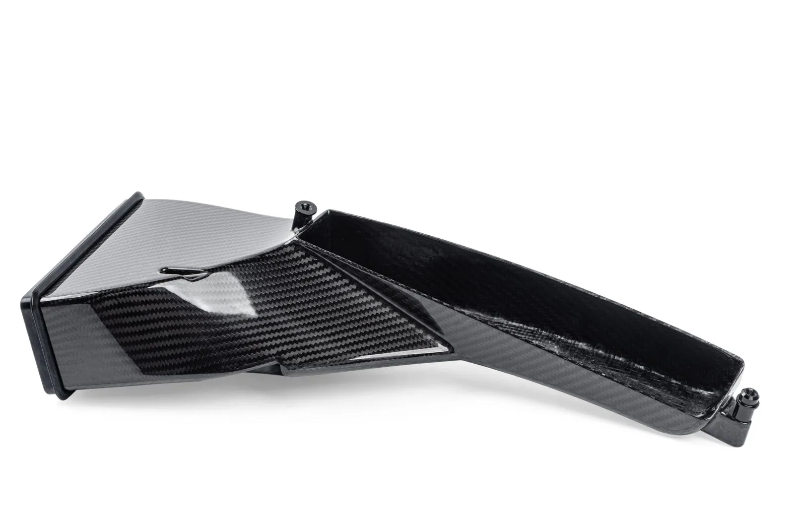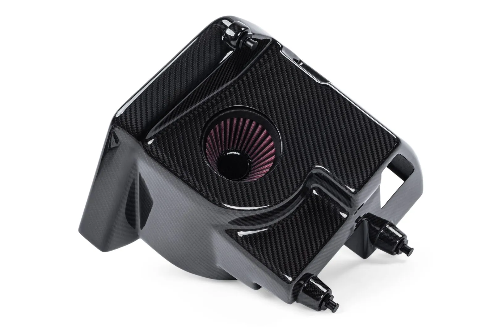 Our system is a full upgrade as it replaces all of the intake components from the inlet scoop all the way to the turbo inlet. This is extremely important as focusing on the airbox alone does not address the main restrictions found in the factory intake system. Simply put, our system flows better than stock, makes more power, puts less strain on the turbocharger, looks sexy under the hood with the gorgeous carbon fiber design, and enhances the sound of the engine.