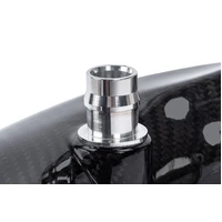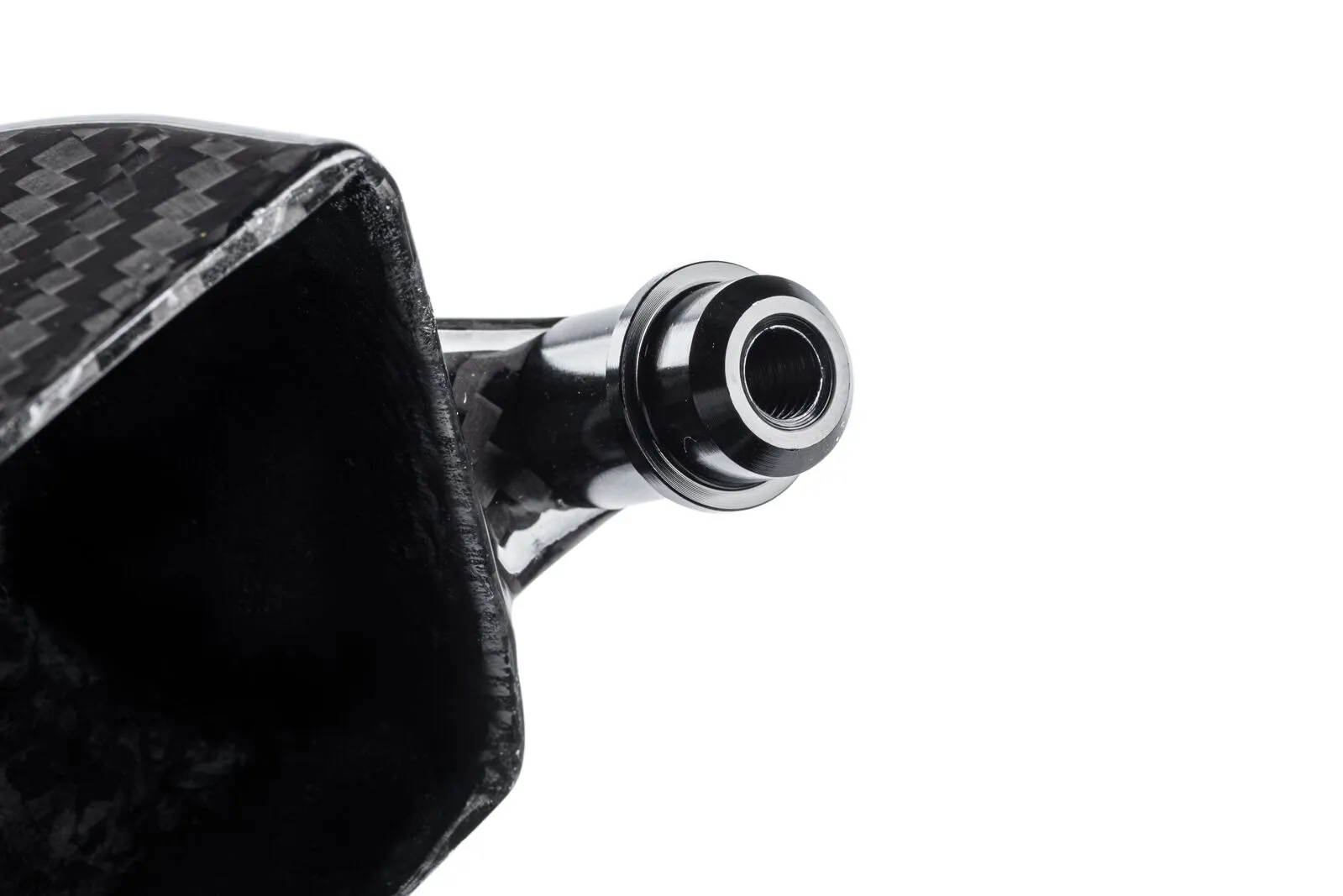 Our system is made from carbon fiber and looks absolutely stunning under the hood. By using this material we are able to make the wall-thickness of the tubes smaller, maximizing the internal diameter, increasing performance even more! The material also allows us to make complex organic shapes necessary when working in a tight engine bay.