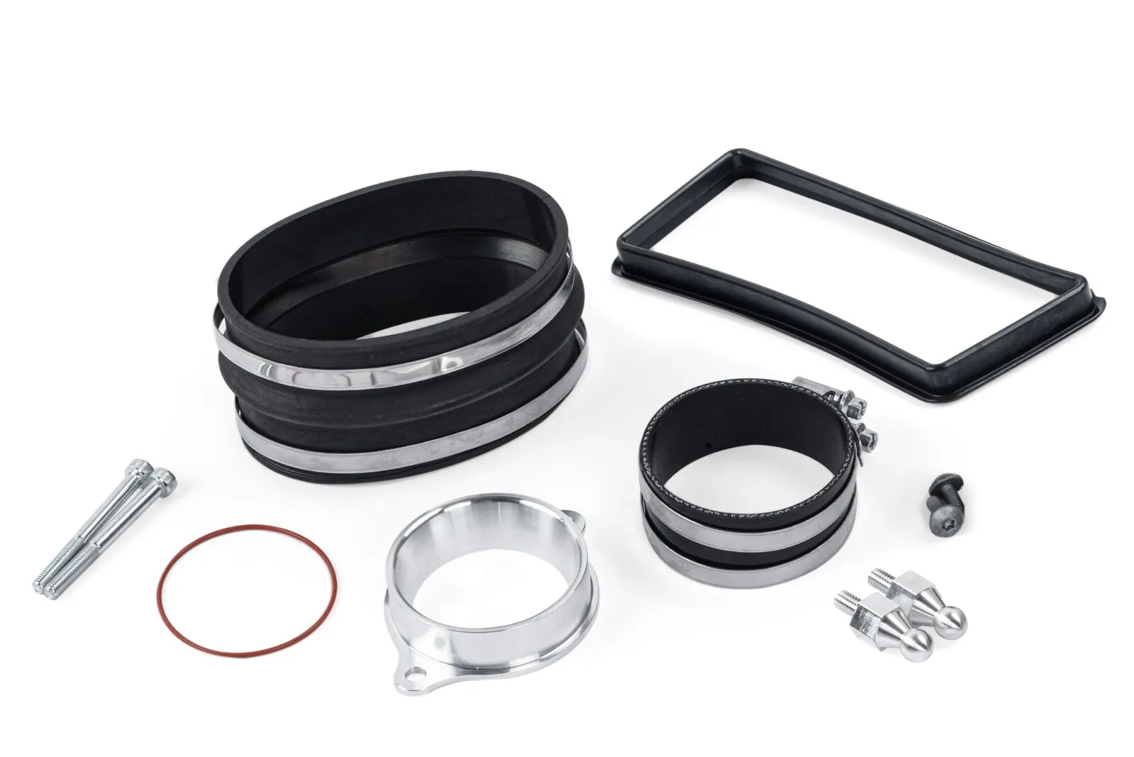 Our kit includes everything you need to bolt on and go. No new tuning is needed to run this product, and the product is emissions friendly. We include all new OEM gaskets and all the nuts, bolts, and clamps needed for an easy install. Lastly, thanks to our billet turbo inlet adapter, this is the only intake you'll ever need. Should you later upgrade your turbo, a new, larger adapter can be installed to adapt to the larger inlet simply by swapping out the billet adapter!