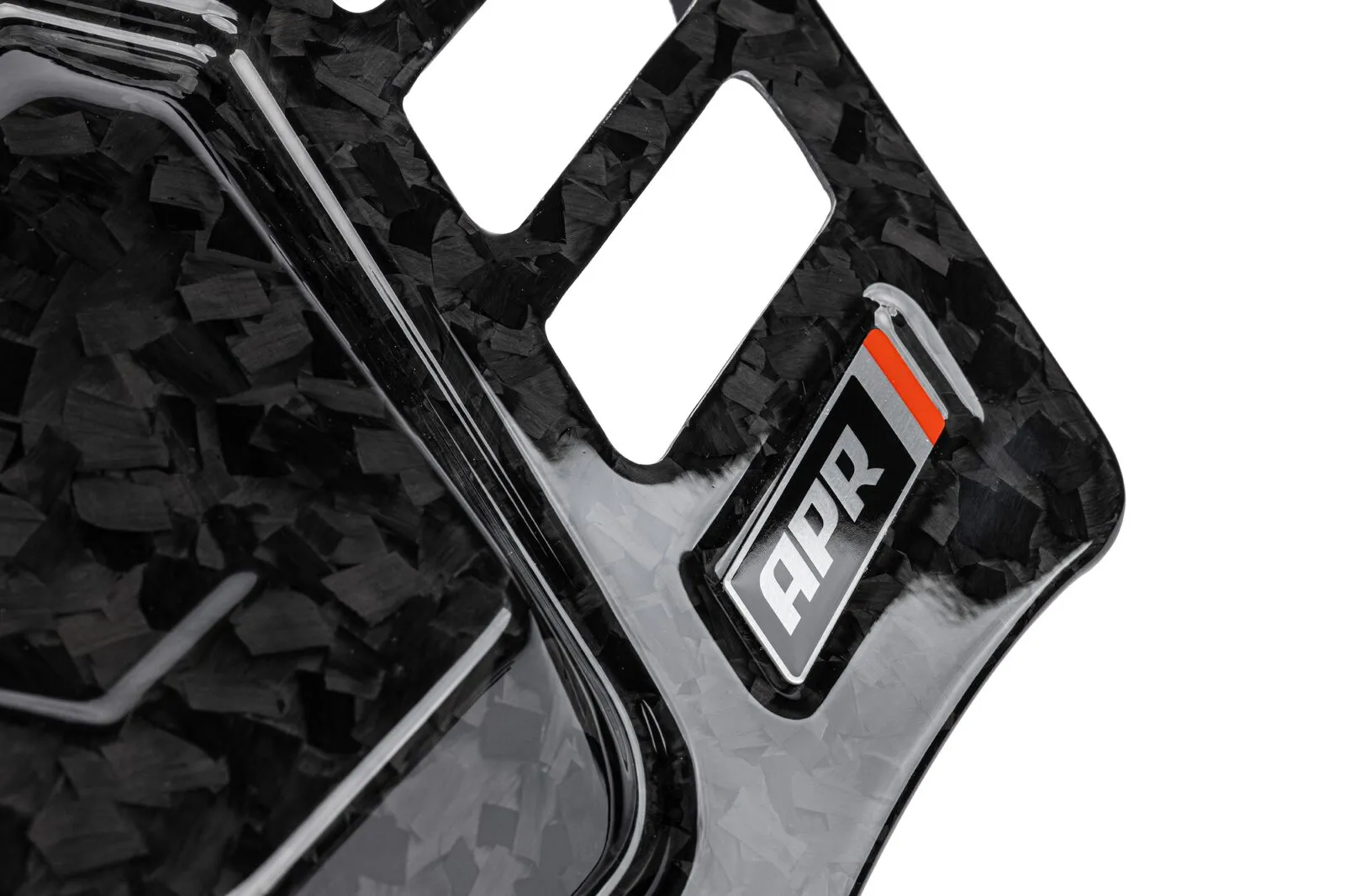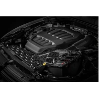 The APR Intake System is sold as an open system but can be configured as a closed system design by adding this cover. This cover is made from Carbon Fiber with a forged pattern and snaps into place without the need for any tools. Additional airflow paths allow the system to pull additional air on high power setups, while also allowing more turbocharger sound.