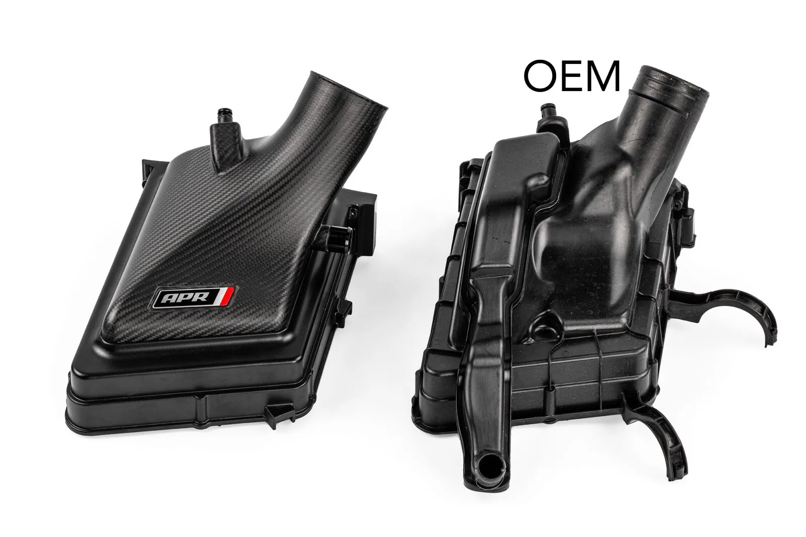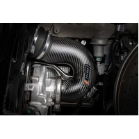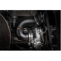 The APR Intake and Turbocharger Inlet System for the Porsche 911 (992) 3.0T and 3.7T offers a substantial upgrade in performance by addressing all restrictions within the factory intake system. This complete system is made from high quality carbon fiber with a gorgeous matte finish and billet fittings integrated directly into the carbon fiber. Smooth and organic transitions throughout the system promote airflow though the tightly packed rear engine design. We've increased flow through the air filters, out of the airbox, and into the turbochargers, addressing each weak point in the factory system. On the flow bench with the higher flowing factory system our system flowed 45% better with less pressure drop. On the dyno this directly translated to more power. On the lower output base 3.0T Carrera with our Stage 1 93 octane tune, we picked up 22 WHP and 22 FT-LBS of torque, to the wheels, and on the 3.7T Turbo S with stock software we saw gains as high as 29 AWHP and 27 AWFT-LBS of torque over stock!