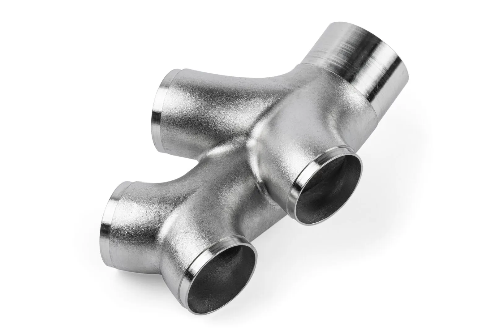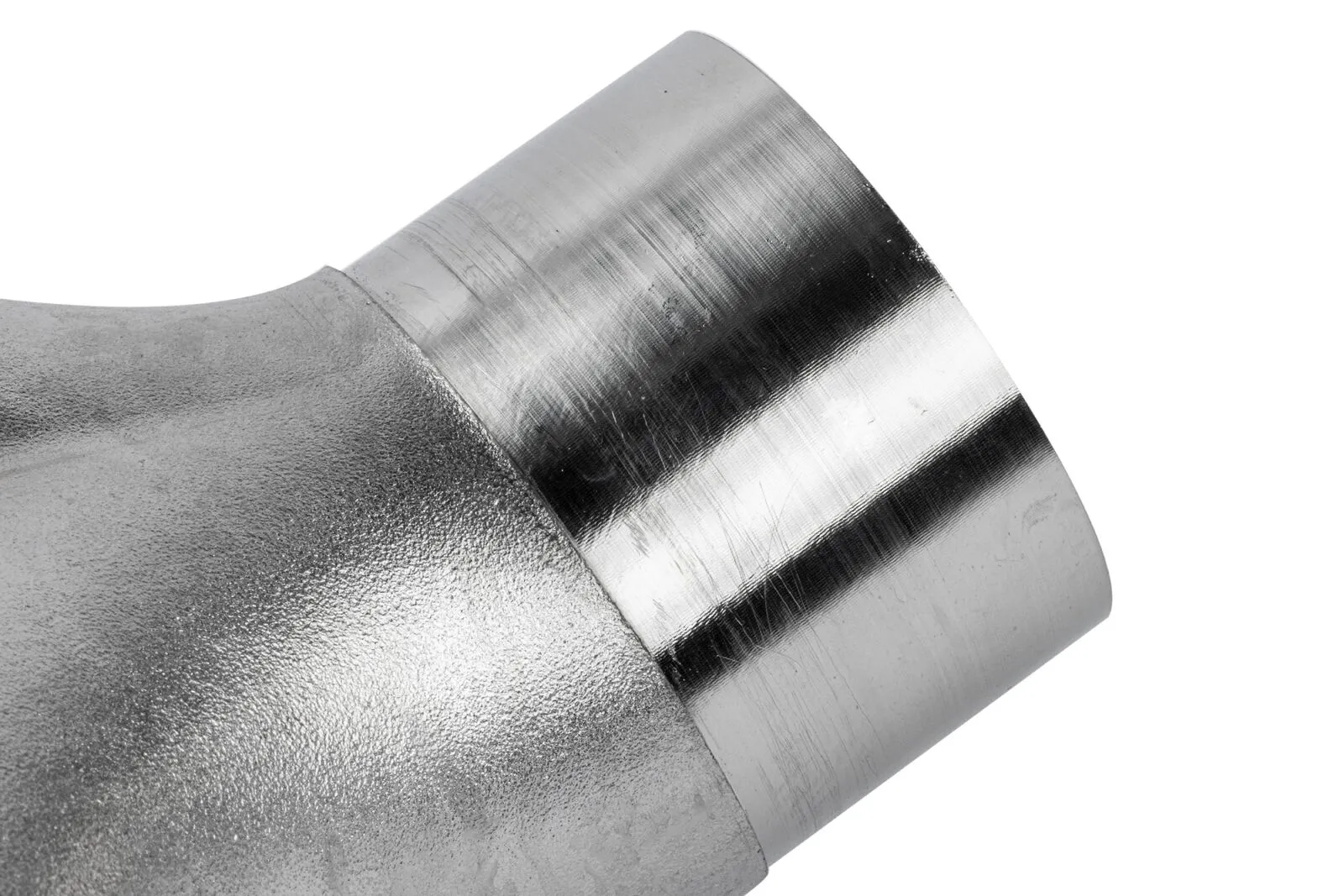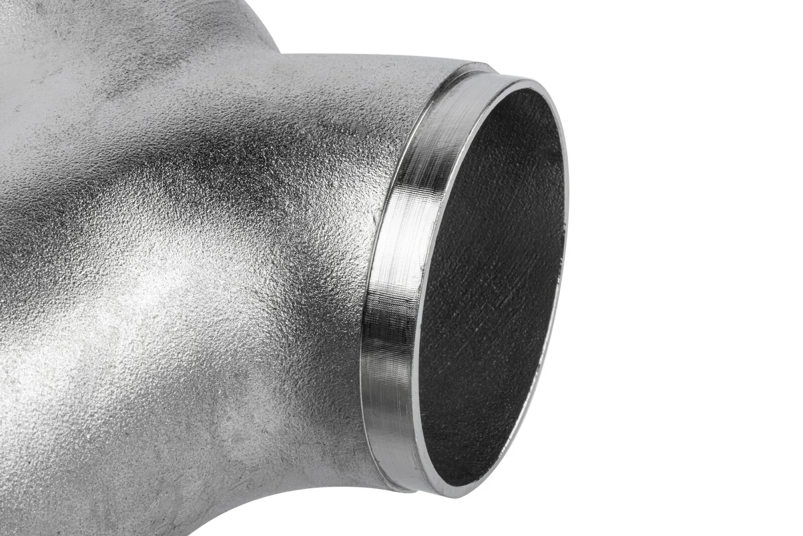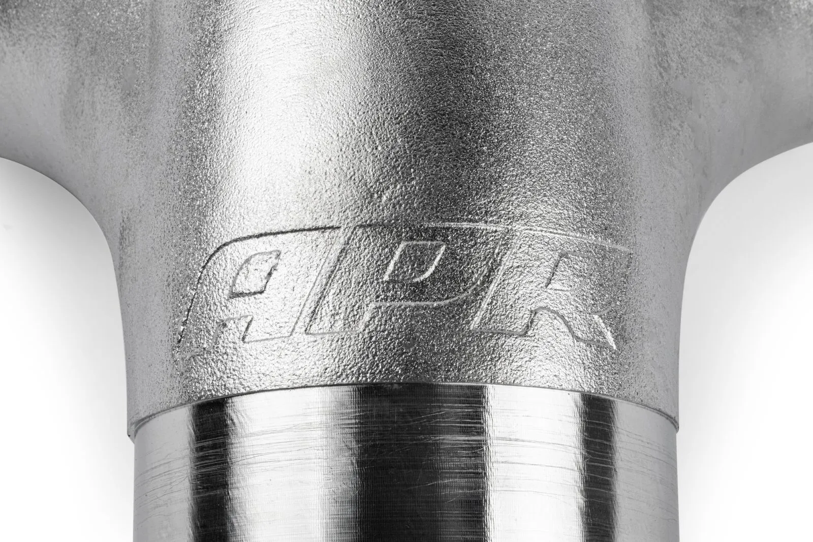 Cast from T304 Stainless Steel, the splitter allows for easy connection to a 76mm (3") pipe and splits to a quad 63.5mm (2.5") pipe. Your exhaust pipes simply butts up to the CNC-machined section of the casting making for a clean transition and easy clamping point with a slip clamp. On the other ends it provides a flat and clean welding point for dual 63.5mm (2.5") pipes (16 gauge / 1.6mm or thinner). This results in a high flow design with a smooth internal surface and internal transition. Each part comes electropolished giving it a bright and clean finish, and an indented APR logo on one side lets you display the part with pride.