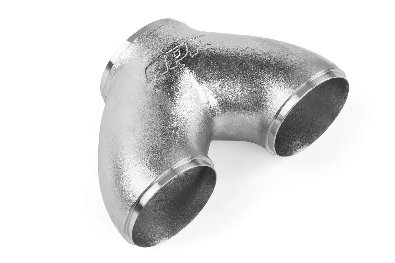 Cast from T304 Stainless Steel, the splitter allows for easy connection to a 70mm (2.75") pipe and splits to a dual 63.5mm (2.5") pipe. On each end the pipe is CNC-machined creating a clean and flush welding point. This results in a high flow design with a smooth internal surface and internal transition. Each part comes electropolished giving it a bright and clean finish, and an indented APR logo on one side lets you display the part with pride.