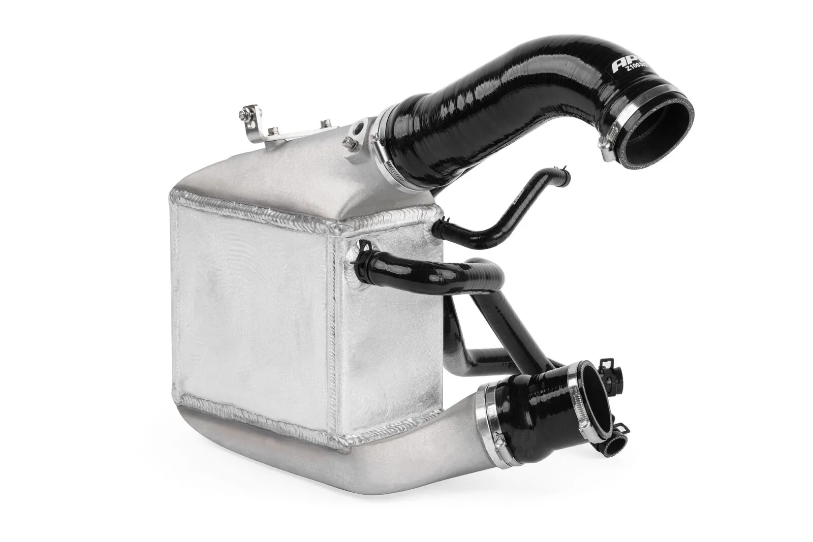 The APR Air-to-Water Intercooler System for the B9 RS4 / RS5 2.9T EA839 offers a substantial leap in performance that directly translates to more horsepower and torque, and consistent performance that's unmatched by the factory cooler. The factory cooler struggles to cool the charged air resulting in excessive intake air temperature due to its small size. This struggle results in ECU protecting the engine by pulling power during a single quarter mile pass, lap around a track, or even during a spirited drive. Simply bolting on the APR System relieves this issue, resulting in an instant boost in power and consistency. The APR system has no trouble remaining consistent thanks to its ability to resist power-robbing heatsoak!