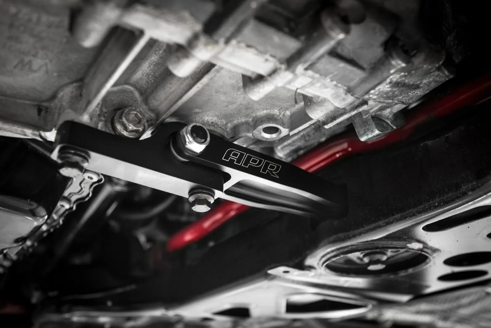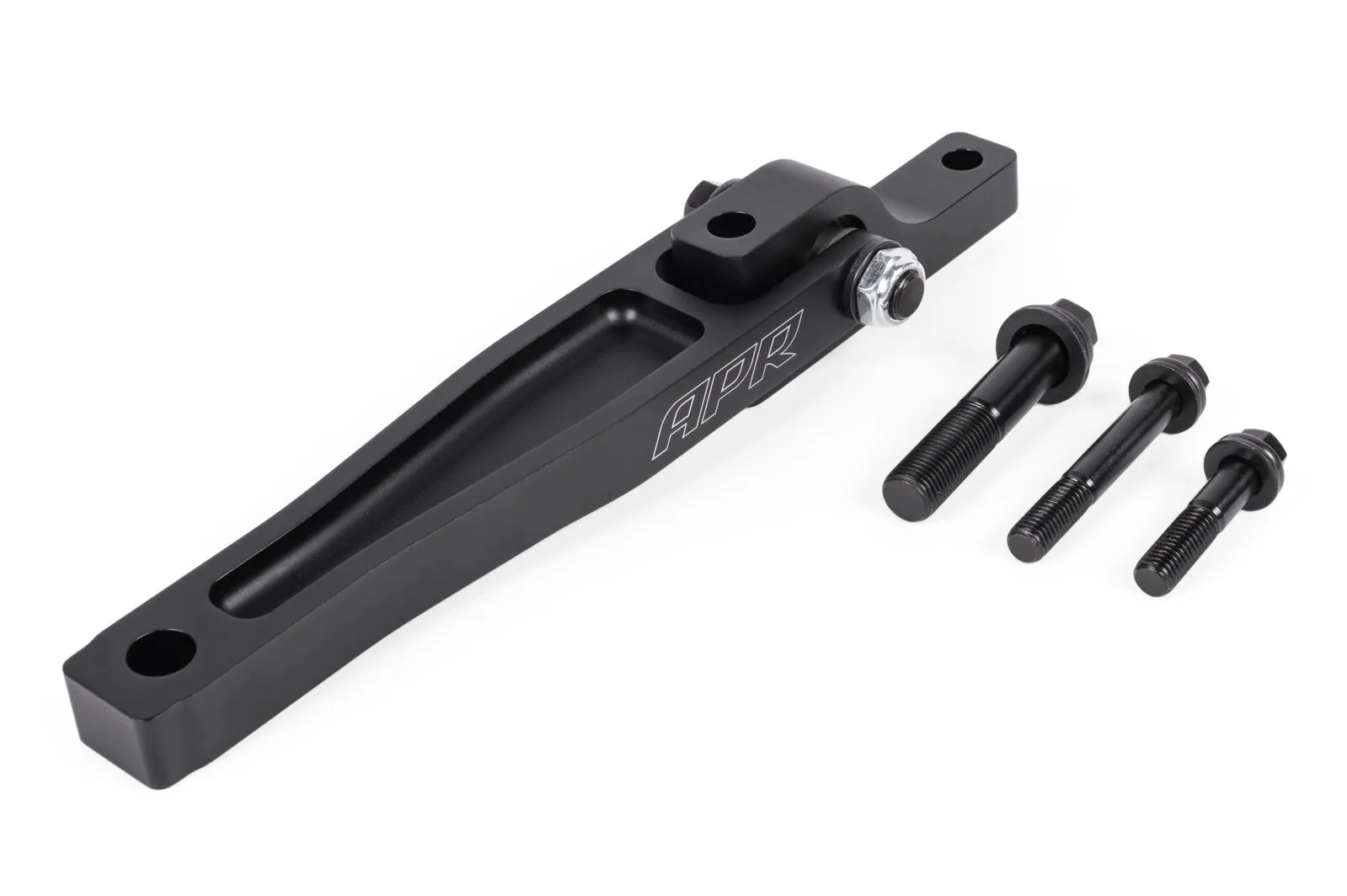 The APR Pendulum mount replaces the factory mount with a new, thick, billet-aluminum two-piece design, featuring a PTFE-lined spherical bearing and ARP® bolts. The system stiffens the driveline to improve shift quality and power transition, while addressing the common and costly factory failure point at the transmission mounting location. It is easy to install, addresses all concerns with the factory setup and includes all necessary hardware to bolt on and enjoy!