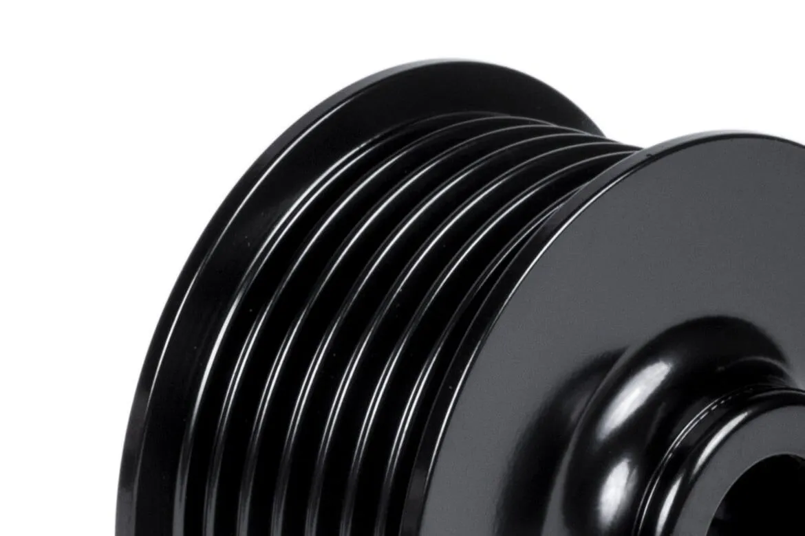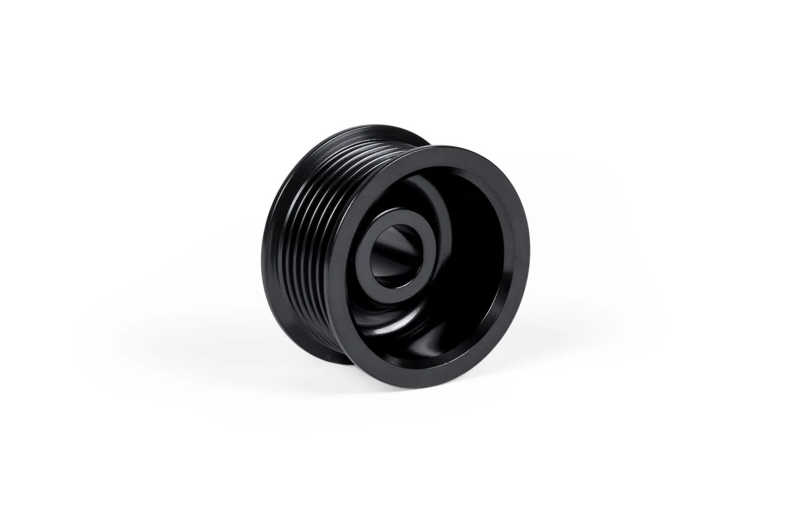 APR's Supercharger Drive Pulley Upgrade decreases the diameter of the factory pulley from ~63.25mm to 57.75mm, which in turn spins the supercharger ~9.5% faster. This results in a healthy bump in horsepower and torque across the entire RPM range with the supercharger operating at a higher rate of speed. The pulley is CNC machined from billet stainless steel, e-coated black for an OEM appearance and is press fitted to the factory supercharger.