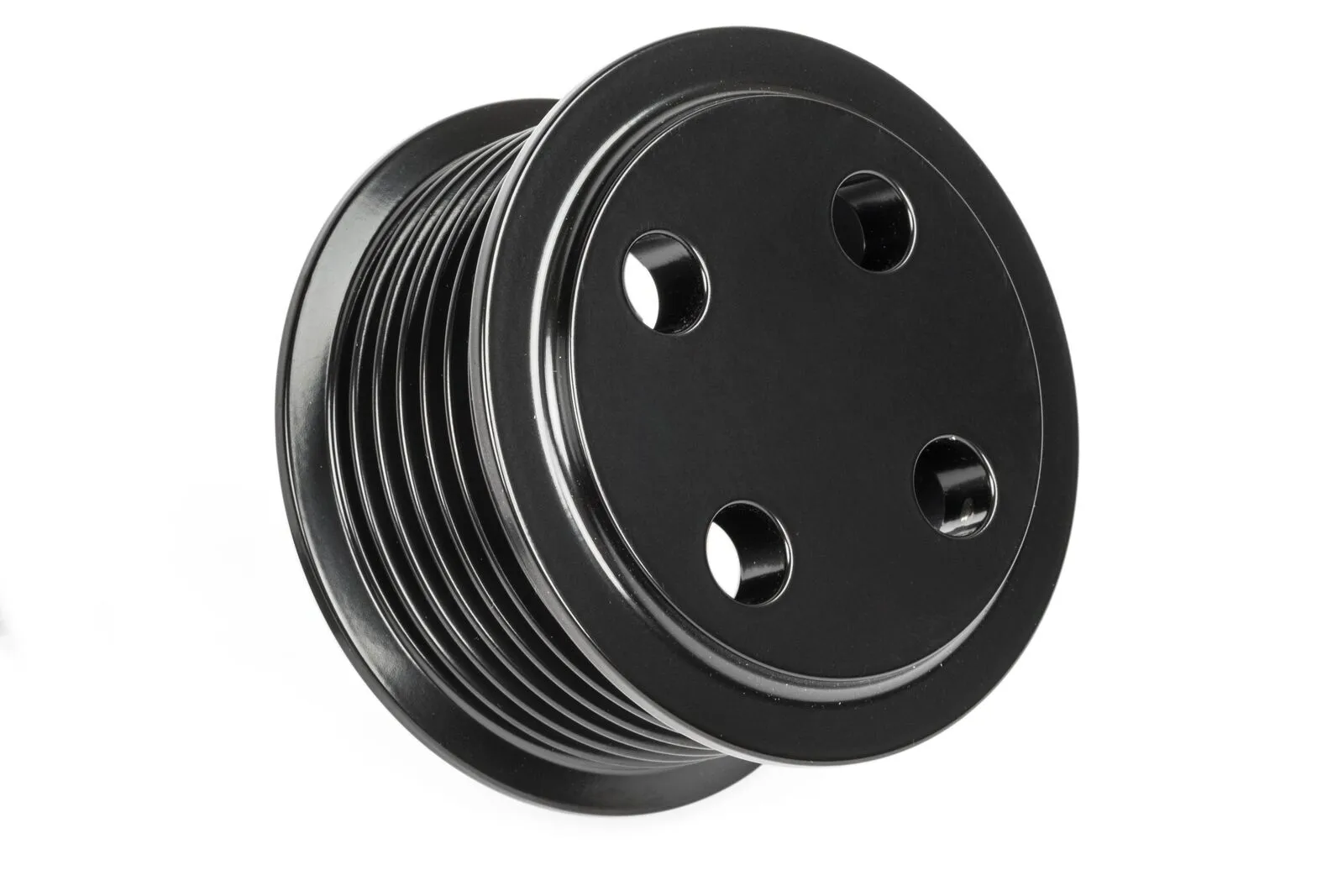APR's Supercharger Drive Pulley Upgrade decreases the diameter of the factory pulley from ~63.25mm to 57.75mm, which in turn spins the supercharger ~9.5% faster. This results in a healthy bump in horsepower and torque across the entire RPM range with the supercharger operating at a higher rate of speed. The pulley is CNC machined from billet stainless steel, e-coated black for an OEM appearance and is bolted on with new OEM bolts.