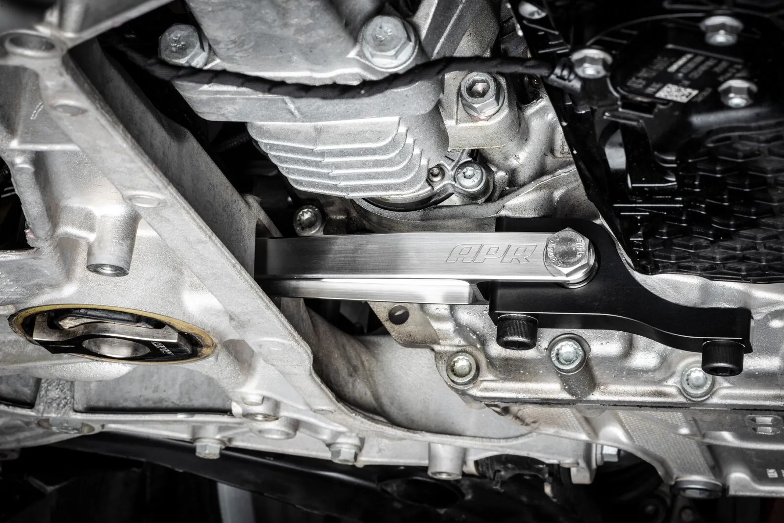 The APR Pendulum mount replaces the factory mount with a new, thick, billet-aluminum and billet-stainless-steel two-piece design, featuring a PTFE-lined spherical bearing and new bolts. The system stiffens the driveline to improve shift quality and power transition. It is easy to install, addresses all concerns with the factory setup and includes all necessary hardware to bolt on and enjoy!