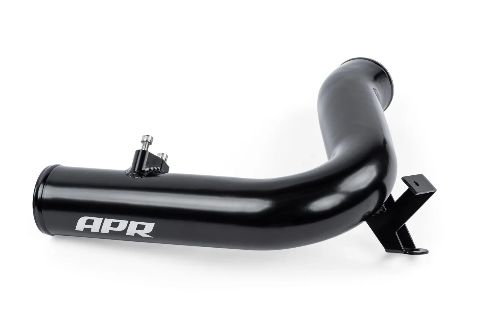 We upgrade the factory plastic pipe with a strong 60mm aluminum pipe. Due to the thin-walled nature of metal vs plastic, we're able to increase the internal diameter of the pipe to maximize airflow. The MAP sensor mounting point is made from CNC-machined billet-aluminum. All brackets are TIG-welded for a strong and precise fit, and the pipe is coated black. A protruding lip at the edge of the pipe helps prevent hose slippage. This pipe is a direct fit to the APR or OEM throttle body hose, as well as the APR or OEM intercooler hose. APR recommends upgrading the throttle body and intercooler hoses as well for maximum performance and reliability.