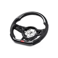 The APR Steering Wheel is beautiful, functional, and convenient to purchase. The top and bottom sections feature a carbon fiber weave, and the sides are motorsport inspired perforate leather with color matched stitching. The deep pocketed palm and thumb grooves on the sides give you a confidence-inspiring grip, and feel comfortable in your hands, as do the ergonomically shaped finger grooves at the top rear of the wheel. Beautifully cross stitched threads give the leather section an extra elegant touch that matches your interior's stitching. And lastly, the flat bottom gives you extra room for your legs, while also letting you know if the wheel is straight or not when tracking the car.
