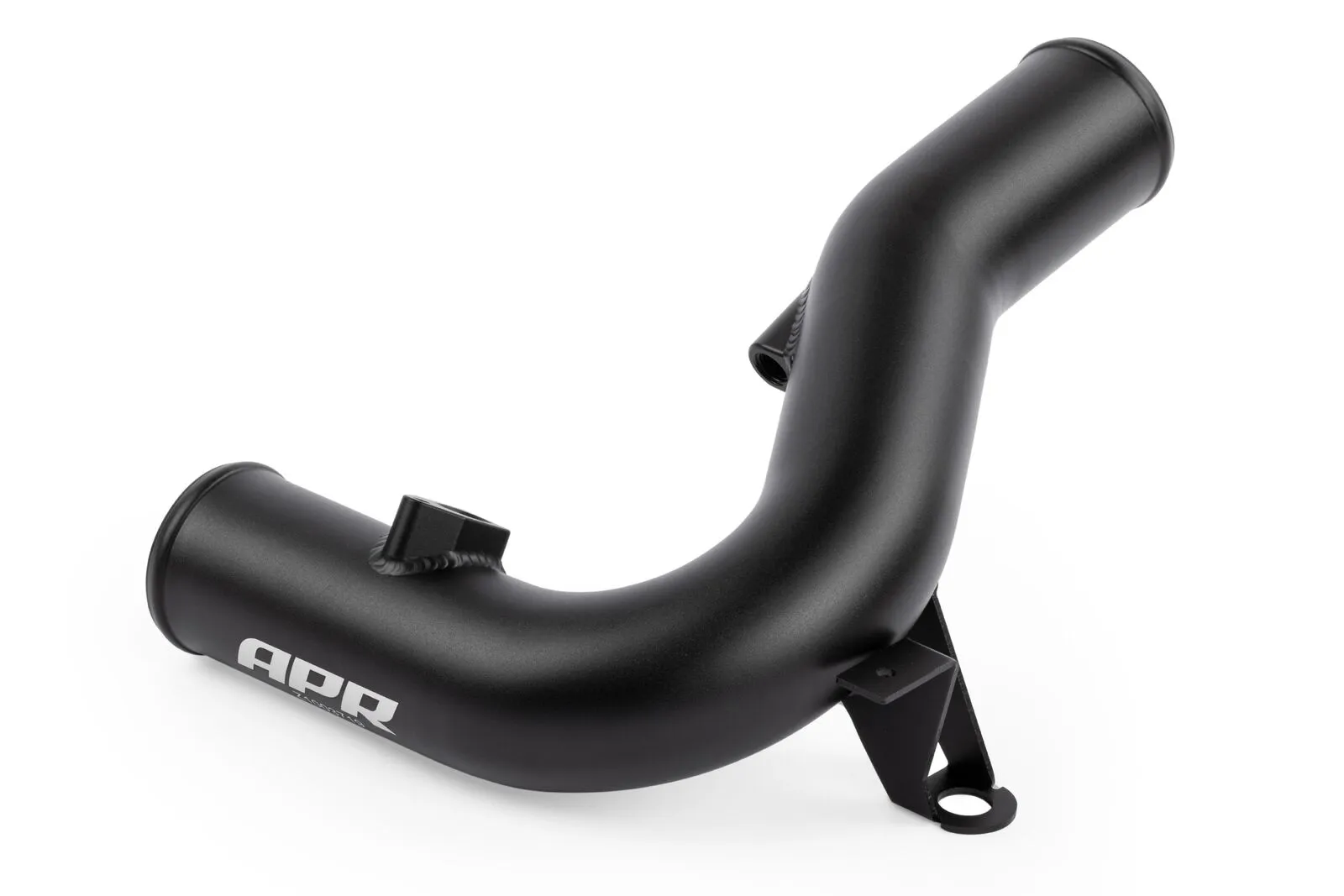 The APR Throttle Body Pipe replaces the factory plastic pipe with a high quality aluminum pipe that's a constant diameter within. We pay close attention to the airflow path and provide as few bends and tight radius turns as possible to maximize performance. Unlike the factory plastic pipes, ours won't melt and crack under extreme conditions, and ours don't contain a failure-prone and resistive internal piece like the factory pipe. The pipe features an additional port which can be used for an additional sensor, water/methanol injection, or however you see fit, and includes an NPT tap to block it off when not in use. The pipe features bead rolled connection points to help resist hose slippage, and all mounting brackets and billet sensor ports are tig-welded to the pipe for a strong connection. Finally, the pipe is finished in an attractive satin-black finish. This all results in a more reliable setup and increased performance through a smooth and strong uninterrupted airflow path. This pipe is compatible with both OEM and upgraded APR charge hoses.