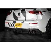 The APR Carbon Fiber Rear Diffuser enhances the rear end of your MK8 GTI to give it a tasteful motorsport inspired look without being too over the top. Following the bodylines of the vehicle, this diffuser give the rear end just the pop it needs to stand out in a crowd and attract the right attention. The exhaust openings mimic the factory opens so it works perfectly with the factory exhaust, or an upgraded system like our own. These components work perfectly with our other body kit pieces.