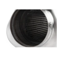 Internally the system is filled with sound absorption material wrapped around a perforated 76mm (3") pipe. This is a straight through muffler design. There are no twists, turns, or baffles to slow exhaust flow. You'll get full uninterrupted flow for maximum power.