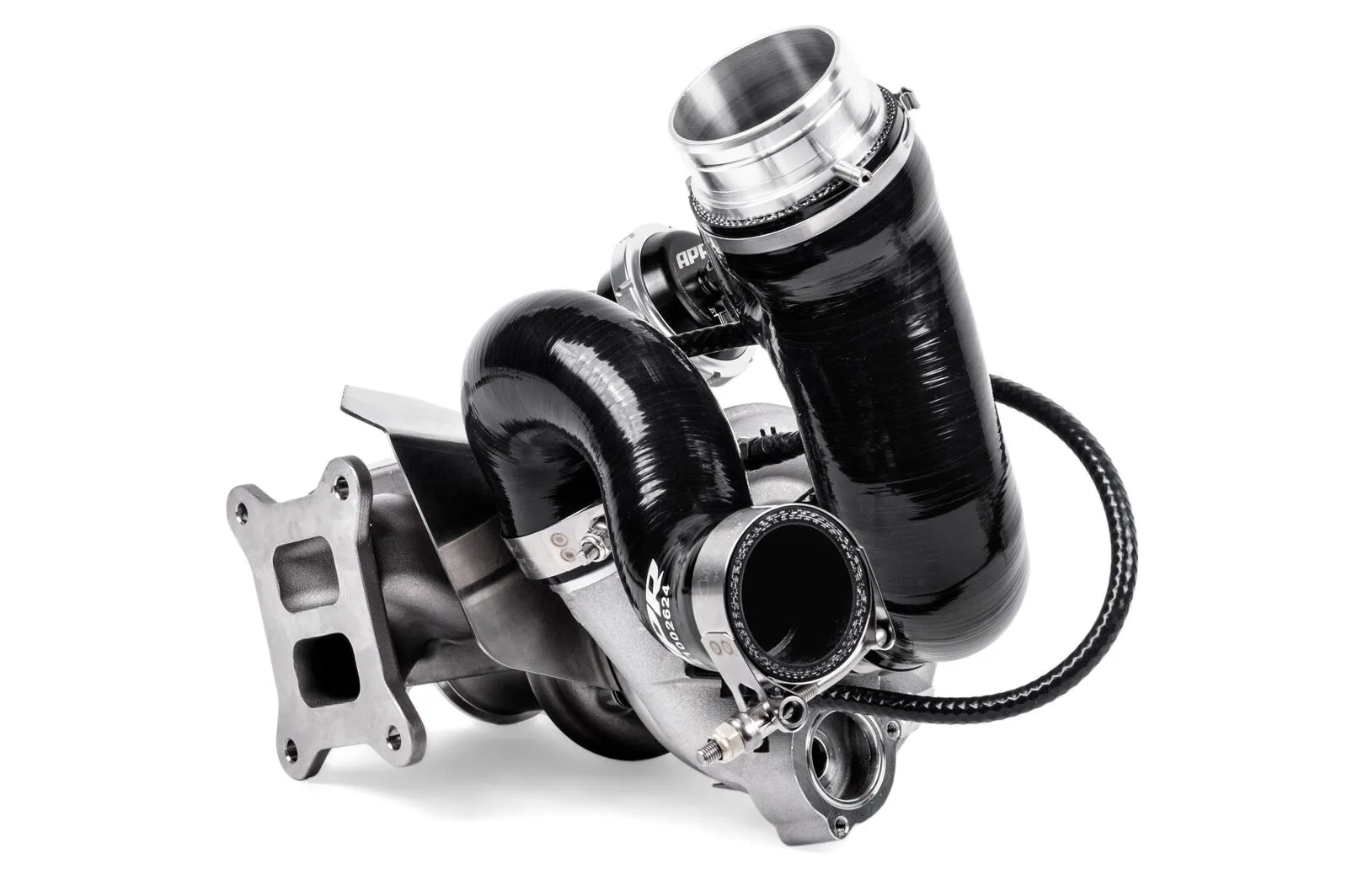 APR Presents the EFR7163 Turbocharger System for the 2.0T EA888 Gen 3 engine! The APR EFR7163 Turbocharger System produces up to 536 HP and lays down 10-second quarter mile passes, all through a convenient and affordable, turn-key solution. It represents a threat to the establishment of turbo four cylinder vehicles of yesteryear, and breaks the hearts of muscle cars and exotics everywhere as they are left in the dust by an engine a third the size of theirs, screaming a turbocharged battle cry as it passes. It is a vicious beast, yet a beast easy to tame. It makes for a civilized drive that quietly sips premium fuel with surprisingly excellent mileage. Deceivingly quick transient response, with near stock-like turbo lag makes for an experience devoid of the compromises many would expect from an engine this size. It is the answer to the desire for more power, and it's the brainchild of APR's talented engineering teams, with over a year and a half of initial development, and a never ending drive for perfection. It is easy to install, blisteringly fast, and produces an absolutely exhilarating driving experience!