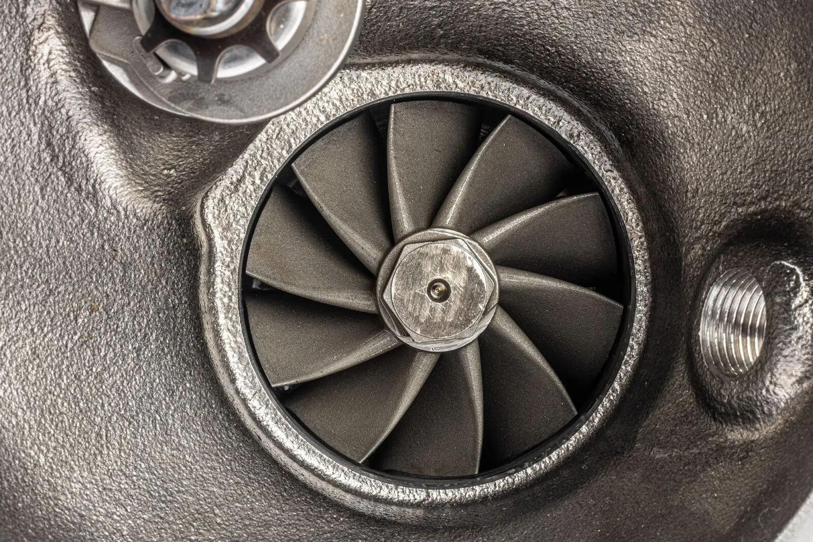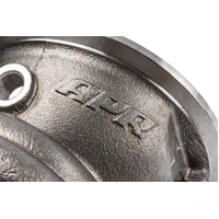 The turbine side of the turbocharger also benefits from our ground-up design. The turbine housing is cast with 310 stainless steel that's designed to take the heat an abuse seen on a road course. The turbine A/R is matched to our new nickel-based superalloy K418 68mm turbine wheel. The system will see low exhaust gas temperature, low exhaust back pressure, low turbo discharge temperature, and low shaft speeds because the system has been properly designed from the ground up for the prescribed power levels. Of course, each rotating group is VSR balanced for reliable operation. This all lends well for customers who plan to use this turbo on a dedicated race car as it has the headroom necessary to push the system further on their own.