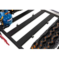 The BASE Rack takes accessories and cargo loading to a whole new level of simplicity, speed and personalisation. With a choice of sizes, accessories and attachments, you can truly Make It Your Own. By incorporating a dovetail extrusion around both the full perimeter and along each edge of the internal beams, the BASE Rack provides endless mounting and attachment options. Adding, removing and repositioning accessories and roof loads is quick and easy with the BASE Rack's dovetail system, making it easier to install and remove individual items without disturbing the whole load. Plus, unlike traditional roof rack channels, the BASE Rack dovetail extrusion won't collect dust and debris. Each BASE Rack accessory or fixture attaches to the rack with a simple clamp mount, including larger hardware such as Hi-Lift(TM) Jack mounts, rollers, recovery boards and even a BASE Rack custom light bar.