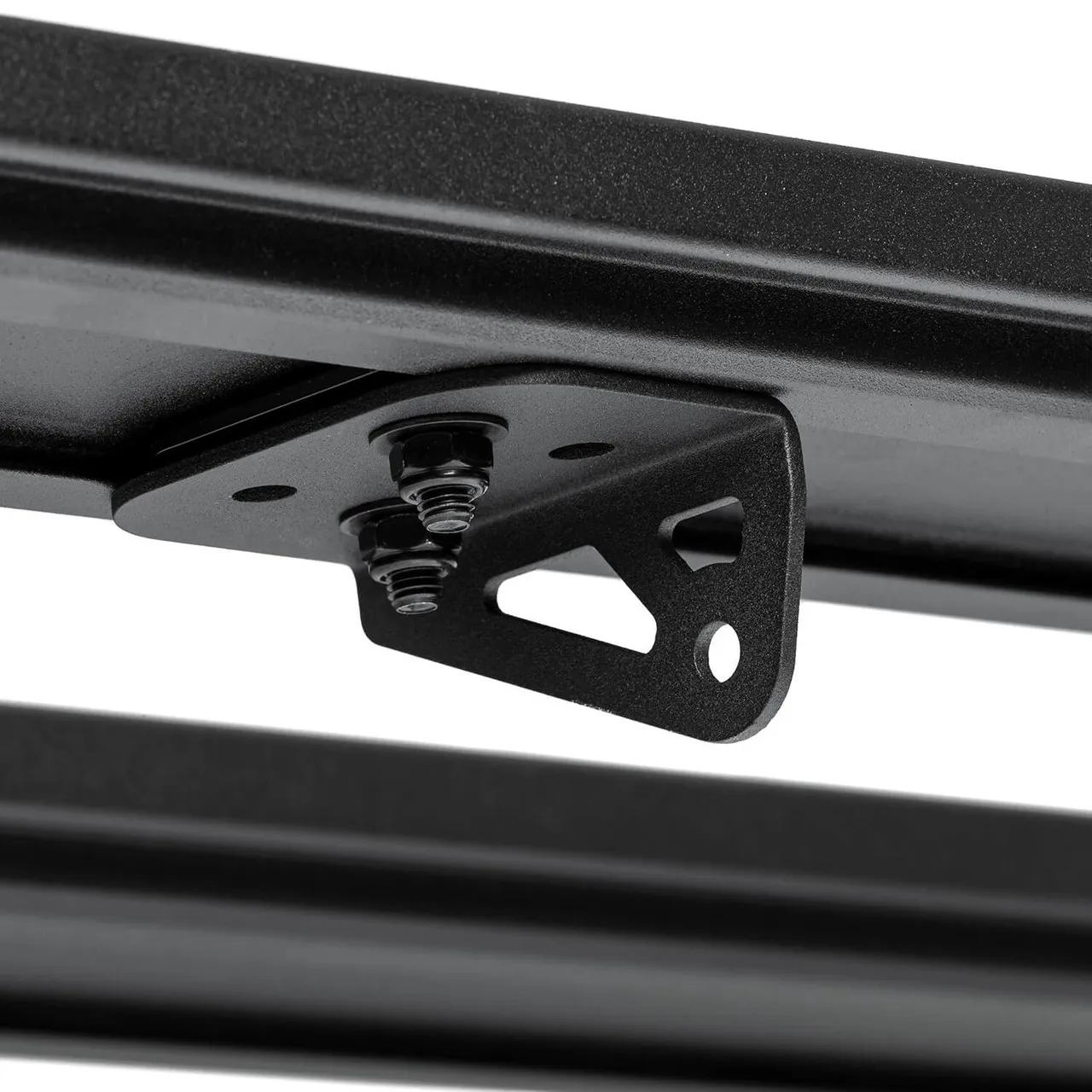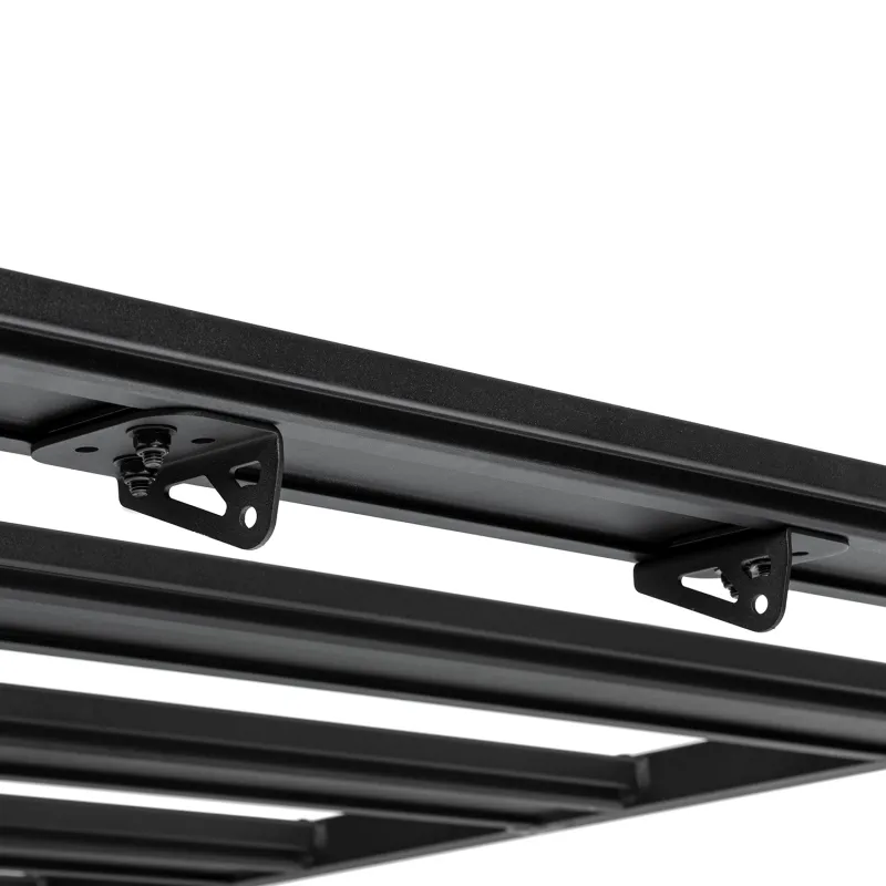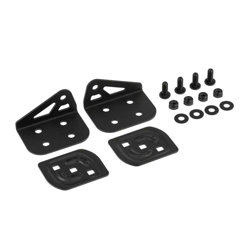 The BASE Rack takes accessories and cargo loading to a whole new level of simplicity, speed and personalization. The Underneath Light Bar Mount adds to the broad range of attachment options and is suitable for single bolt, end-mount light bars and work lights. The mount consists of a left-right pair of brackets that attach to the bottom of BASE Rack cross beams using an included stud plate and fasteners. It is suited for mounting small items up to 7.7lb per pair. By incorporating a dovetail extrusion around both the full perimeter and along each edge of the internal beams, the BASE Rack provides endless mounting and attachment options. Adding, removing and repositioning accessories and roof loads is quick and easy with the BASE Rack's dovetail system, making it easier to install and remove individual items without disturbing the whole load. Plus, unlike traditional roof rack channels, the BASE Rack dovetail extrusion won't collect dust and debris.