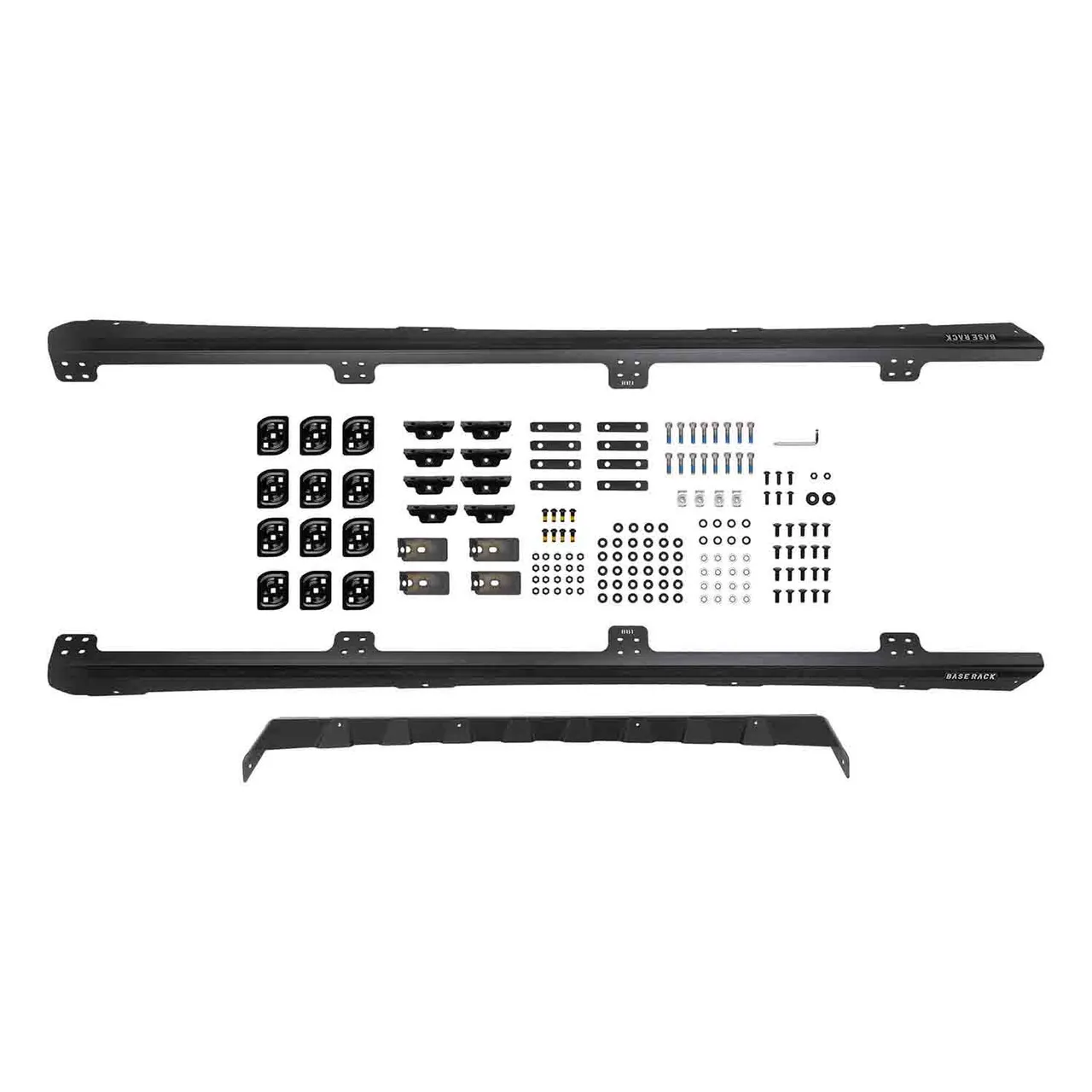 ARB's BASE Rack mount kit for the Land Cruiser 200 Series uses proven attachment methods to keep the roof rack as close as practical to the vehicle. It includes a wind deflector and is compatible with the rear OE mounted antenna. BASE Rack specific blade brackets suit the 84 x 51 in (PN 1770040) BASE Rack. By incorporating a dovetail extrusion around both the full perimeter and along each edge of the internal beams, the BASE Rack provides endless mounting and attachment options. Adding, removing and repositioning accessories and roof loads is quick and easy with the BASE Rack's dovetail system, making it easier to install and remove individual items without disturbing the whole load. Plus, unlike traditional roof rack channels, the BASE Rack dovetail extrusion won't collect dust and debris. Each BASE Rack accessory or fixture attaches to the rack with a simple clamp mount, including larger hardware such as Hi-Lift(TM) Jack mounts, rollers, recovery boards and even a BASE Rack custom light bar.