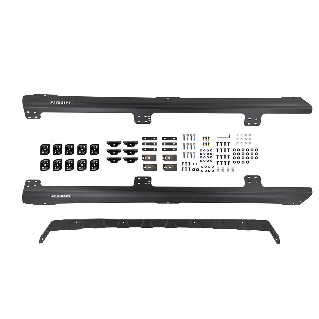 ARB's BASE Rack mount kit for the Land Cruiser 200 Series uses proven attachment methods to keep the roof rack as close as practical to the vehicle. It includes a wind deflector and is compatible with the rear OE mounted antenna. BASE Rack specific blade brackets suit the 61 x 51 in (PN 1770020) BASE Rack. By incorporating a dovetail extrusion around both the full perimeter and along each edge of the internal beams, the BASE Rack provides endless mounting and attachment options. Adding, removing and repositioning accessories and roof loads is quick and easy with the BASE Rack's dovetail system, making it easier to install and remove individual items without disturbing the whole load. Plus, unlike traditional roof rack channels, the BASE Rack dovetail extrusion won't collect dust and debris. Each BASE Rack accessory or fixture attaches to the rack with a simple clamp mount, including larger hardware such as Hi-Lift(TM) Jack mounts, rollers, recovery boards and even a BASE Rack custom light bar.