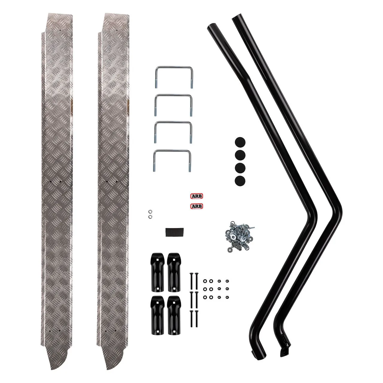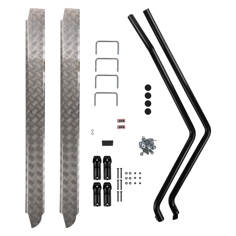 Side rail and combination steps to protect the front quarter panels and lower sills. The integrated step offers improved vehicle access. While they offer an excellent barrier against rock ledges, they are not considered a true rock slider that might be required for aggressive rock crawling.