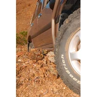 Side rail and combination steps to protect the front quarter panels and lower sills. The integrated step offers improved vehicle access. While they offer an excellent barrier against rock ledges, they are not considered a true rock slider that might be required for aggressive rock crawling.