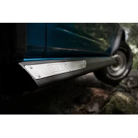 ARB Rock Sliders to suit the Ford Bronco 2-door are a one-piece design to spread the load and protect the vulnerable lower sill area of the vehicle when used off-road. The multi-folded sliders are directly mounted to the vehicle chassis rail and do not restrict ramp over angle. ARB Rock Sliders are manufactured from multi-folded, 4mm laser cut, folded and pulse welded sheet steel to provide strength without the need for thicker material to keep weight at a minimum. To complement the ARB Bronco protection equipment range, the Rock Sliders are finished in Integrit(TM) textured black powder coat.