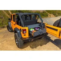 In order to make the most of the Jeep Wrangler JK Unlimiteds cargo area and maximize storage and flexibility of use, a new roller drawer module has been developed. The RDRF790 incorporates a single Roller Drawer and an integrated roller floor top. The design allows for plenty of accessible and secure storage in the drawer. While the roller drawer function is self-explanatory, the roller floor provides easy access to a ARB Fridge Freezer or other gear. The 37 quart ARB Fridge Freezer (10800352) can be mounted in the traditional front to back orientation. Although a tight fit, a 50 quart ARB Fridge Freezer (10800472) can be oriented left to right across the drawer and rolled rearwards for easier access.