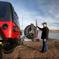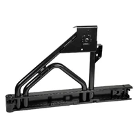 Built to the same uncompromising standards as our Bumpers, all ARB tire carriers incorporate a heavy duty towing system and depending on the vehicle may accommodate one or two tires or a jerry can holder. There are many benefits associated with fitting a tire carrier to a vehicle. Many 4x4s have their spare tire positioned underneath the vehicle making it difficult to access and vulnerable to damage, particularly in harsh off road environments. Others have their spare tire mounted on the back door, which can place stress on the door hinges, resulting in rattles and compromised dust sealing as increased wear is put on the door assembly. Both of these mounting methods can also prove unsuitable if a larger tire size is sought. An ARB tire carrier addresses all of these issues, relocating the spare tire onto the bumper assembly via a swing out carrier. Operation of the swing out carriers could not be more simple. Slight pressure applied to a lever opens each carrier with a gas strut assisting this process. The strut holds the carrier in the open position, with engagement of a locking pin only being necessary if the vehicle is on an extreme side angle. The carrier can be closed with a simple slam shut, with the spring loaded locking pin automatically disengaging as soon as the weight is released.