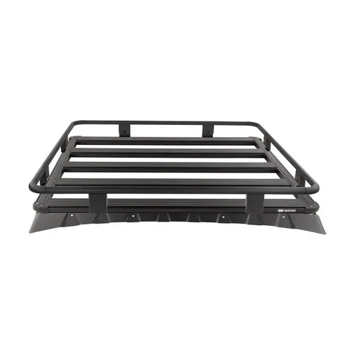 The BASE Rack takes accessories and cargo loading to a whole new level of simplicity, speed, and personalization. The BASE Rack is fully-welded aluminum for lightweight strength that doesn't flex under load. It can therefore be mounted close to the vehicle roof for a slimline aesthetic and reduced drag. Its dovetail extrusion attachment system runs the full perimeter of the rack and along each internal beam providing endless mounting and attachment options. Adding, removing, and repositioning accessories and roof loads is quick and easy and individual items may be installed or removed without disturbing the whole load. Unlike traditional roof rack channels, the BASE Rack dovetail system doesn't collect dust and debris. This kit includes a 49 in (L) x 51 in (W) BASE Rack, mount kit with wind deflector to suit the Toyota Tacoma along with full guard rails. The rails attach quickly and easily to the dovetail extrusion around the rack's perimeter with some additional fixing points at the rack corners. A full guard rail system can be taken on or off in just a few minutes. The rails running around the perimeter of the rack act as a load block, helping to prevent larger items from shifting when loading and unloading, as well as during transit. The wider rack option allows for more accessories to be hung to the side without interference with the vehicle. It also allows for certain accessories such as aux lights to be mounted underneath the rack and for accessories to be mounted east-west (e.g., recovery boards) offering greater flexibility with cargo loading.
