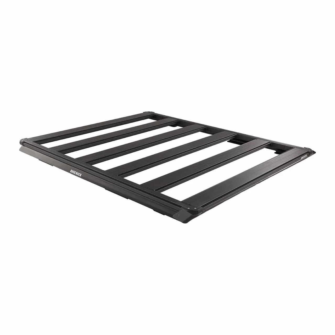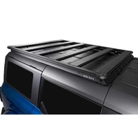 The BASE Rack takes accessories and cargo loading to a whole new level of simplicity, speed, and personalization. The BASE Rack is fully welded aluminum for lightweight strength that doesn't flex under load. It can therefore be mounted close to the vehicle roof for a slimline aesthetic and reduced drag. Its dovetail extrusion attachment system runs the full perimeter of the rack and along each internal beam providing endless mounting and attachment options. Adding, removing, and repositioning accessories and roof loads is quick and easy, and individual items may be installed or removed without disturbing the whole load. Unlike traditional roof rack channels, the BASE Rack dovetail system doesn't collect dust and debris. This kit includes a 61 in (L) x 51 in (W) BASE Rack and mount kit with wind deflector to suit the Ford Bronco.