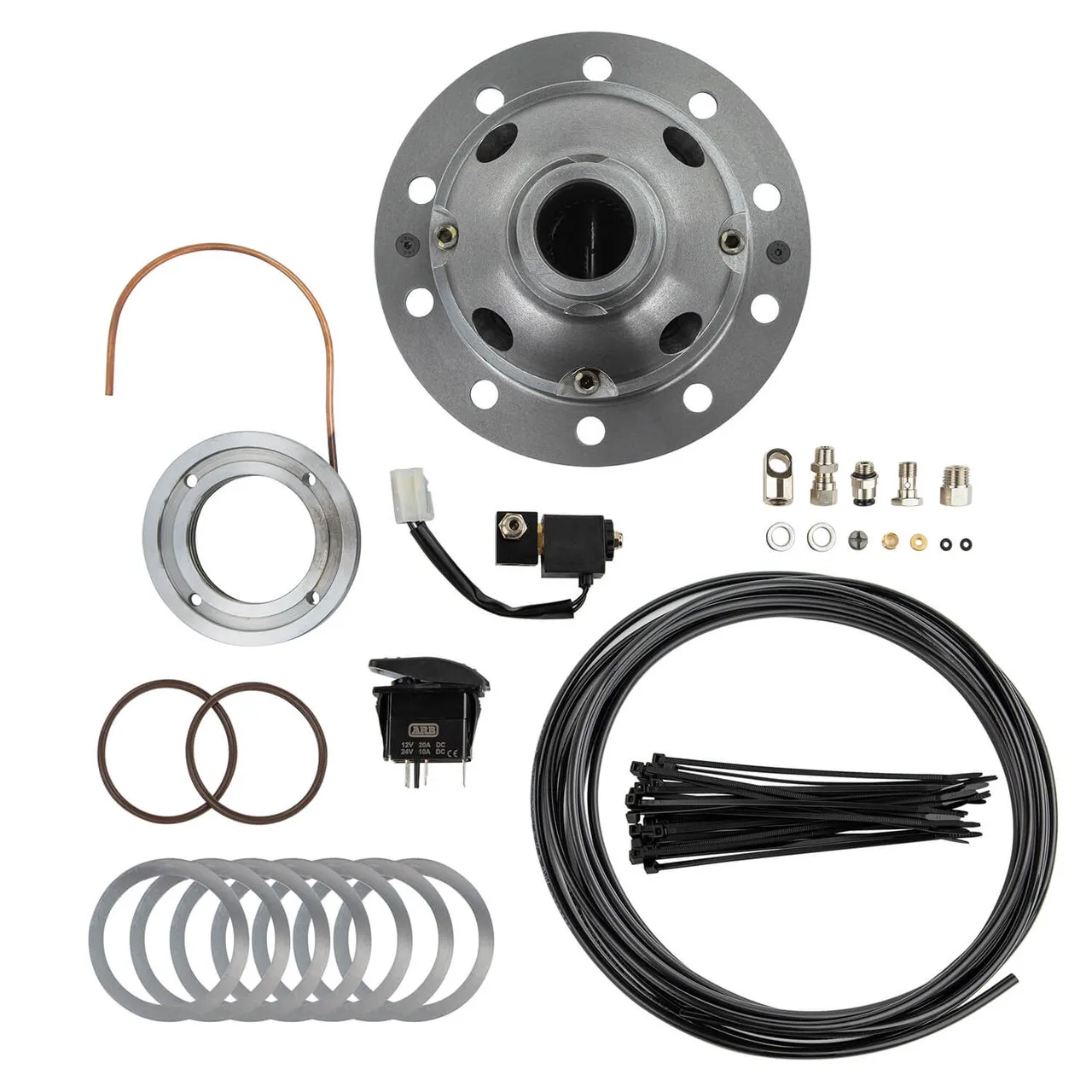 The world's premier traction aid, an ARB Air Locker(TM) keep you moving in all conditions. With the flick of the switch an Air Locker gives instant lock at any moment and its super strong design allows activation at any speed allowing you to tackle the toughest terrain. The advantage of the Air Locker lies in the pneumatically operated locking system inside the differential. When activated, the Air Locker prevents the internal differential gears from rotating and therefore prevents the axle shafts from turning independently of each other. With both wheels tied directly to the rotation of the ring gear, the vehicle maintains maximum possible traction at all times. When unlocked, it operates like a conventional open differential. An Air Locker equipped vehicle can be driven in a slower, safer and more controlled manner, greatly reducing the likelihood of vehicle damage and environmental impact.