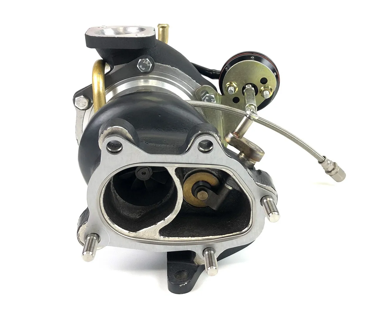 Supplied world-wide for street and race applications, you will not find a turbocharger offering better all round performance.  This turbocharger is capable of flowing 380hp at the crank, responds quickly by pulling 18 psi by 3600rpm on a EJ20 Engine and then runs strongly all the way to redline.