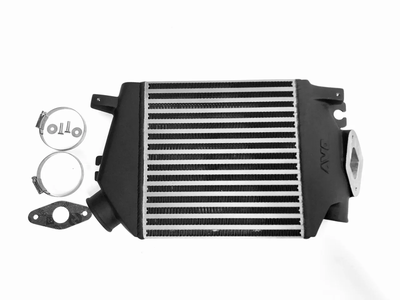 The AVO V2 Top Mount Intercoolers are made from an aluminium bar and plate core with RAW cast aluminium end tanks for a direct replacement part. These were designed specifically to provide the best flow and cooling while bolting up to the factory location. We use our specially designed finn structure in our cores to flow the best CFM along with ideal temperature drop for safer intake air temperatures. The standard factory intercooler setup is quite inefficient and does not allow your engine to produce anywhere near its full potential plus the downfall with cracking of the plastic end tanks. The AVO V2 TMIC Intercooler upgrade kit allows your engine to unleash the horsepower simply through less back pressure. This will allow your turbocharger to increase up to 1~2 PSI in boost and this power is found everywhere on the rpm band, making your car much more fun to drive. Better response and a deeper well of torque to dip into!