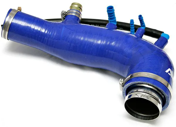 AVOTurboworld designed its inlet pipe with two goals in mind. The primary goal was to make the pipe strong enough to resist sucking shut on even the largest of turbochargers. The other was to make the largest pipe that could fit in the narrow space available on the OEM intake manifold and stock turbocharger.